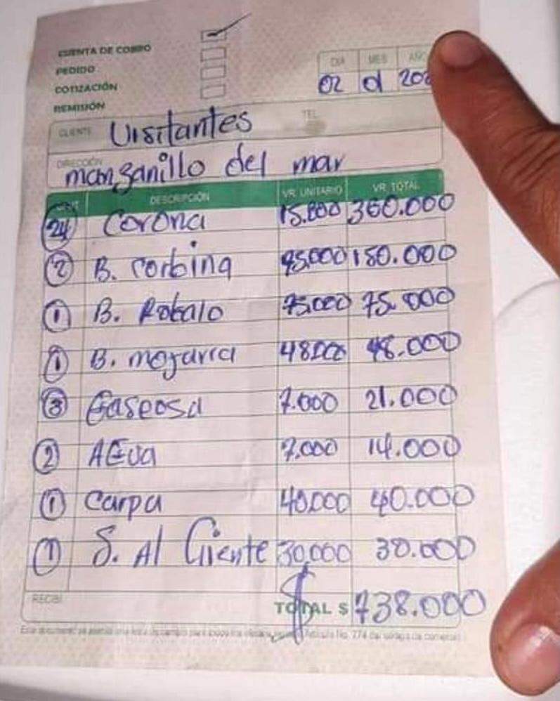 Uy Echeverry... A turistas les salió la cuenta en $738.000 y denuncian que los estafaron